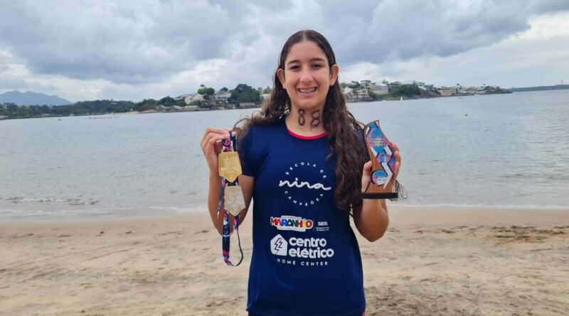 A nadadora maranhense Sofia Duailibe teve um excelente desempenho na 12ª etapa da Copa Brasil de Águas Abertas 2024, competição organizada pela Confederação Brasileira de Águas Abertas (CBDA). Sofia, que é atleta da Atlef/Nina e conta com os patrocínios do governo do Estado e do Centro Elétrico, por meio da Lei de Incentivo ao Esporte, conquistou três medalhas no evento realizado entre sábado (19) e domingo (20), em Vitória-ES: além de faturar o título da categoria Infantil 2 Feminino nos 2,5 km, a maranhense brilhou na prova de 1,5 km, garantindo a prata no Infantil 2 Feminino e ficando com o bronze no Geral Feminino.