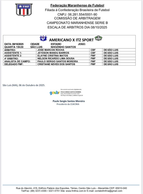 CEAF divulga arbitragem para jogos da fase de ida das quartas de final da Série B Maranhense