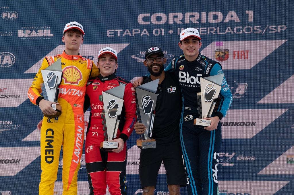Dono do melhor tempo no treino classificatório que foi realizado na sexta-feira (2), Ciro Sobral largou na pole position na Corrida 1 em Interlagos, realizada na manhã de sábado (3), e garantiu uma vitória de ponta a ponta, se defendendo muito bem das tentativas de ultrapassagem do vice-líder Ethan Nobels. Esse foi o primeiro triunfo de Ciro na Fórmula 4 Brasil e a primeira vez que um piloto do Norte/Nordeste conquista o lugar mais alto do pódio na história da categoria-escola.