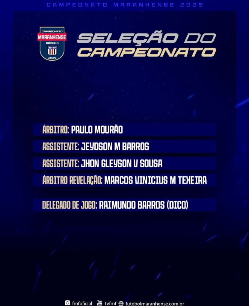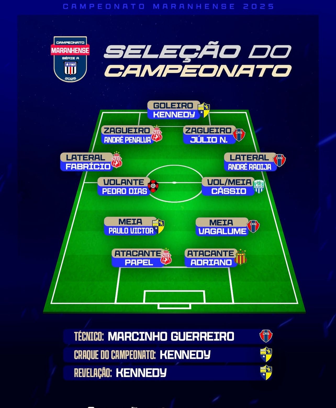 A Federação Maranhense de Futebol ( FMF), divulgou nesta quarta-feira (21), a Seleção do Campeonato Maranhense 2025. A competição foi encerrada no último sábado (17), er teve como campeão o Maranhão Atlético Clube.