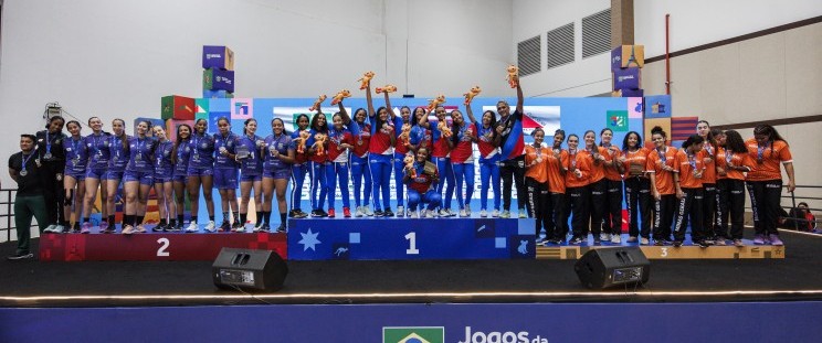 Nas quadras, o time de basquete feminino também teve um desempenho notável, conquistando a medalha de ouro e garantindo acesso à 1ª divisão.
