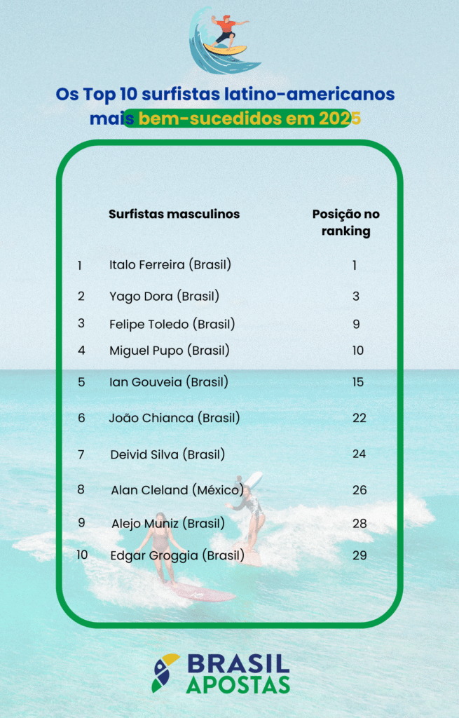 O surfe latino-americano brilha no cenário mundial, com o Brasil liderando o ranking da WSL. BrasilApostas analisa o desempenho dos surfistas masculinos e femininos.