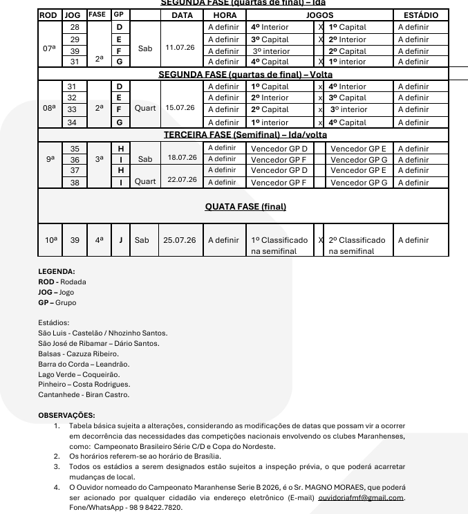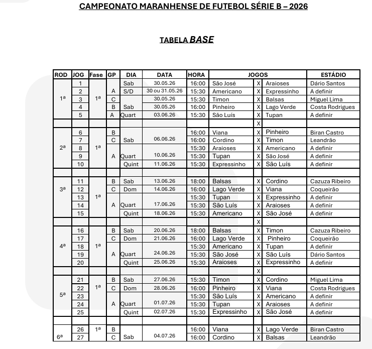 Noticia em Destaque Tabela do Campeonato Maranhense Série B 2026 Confira a Tabela do Campeonato Maranhense Série B 2026